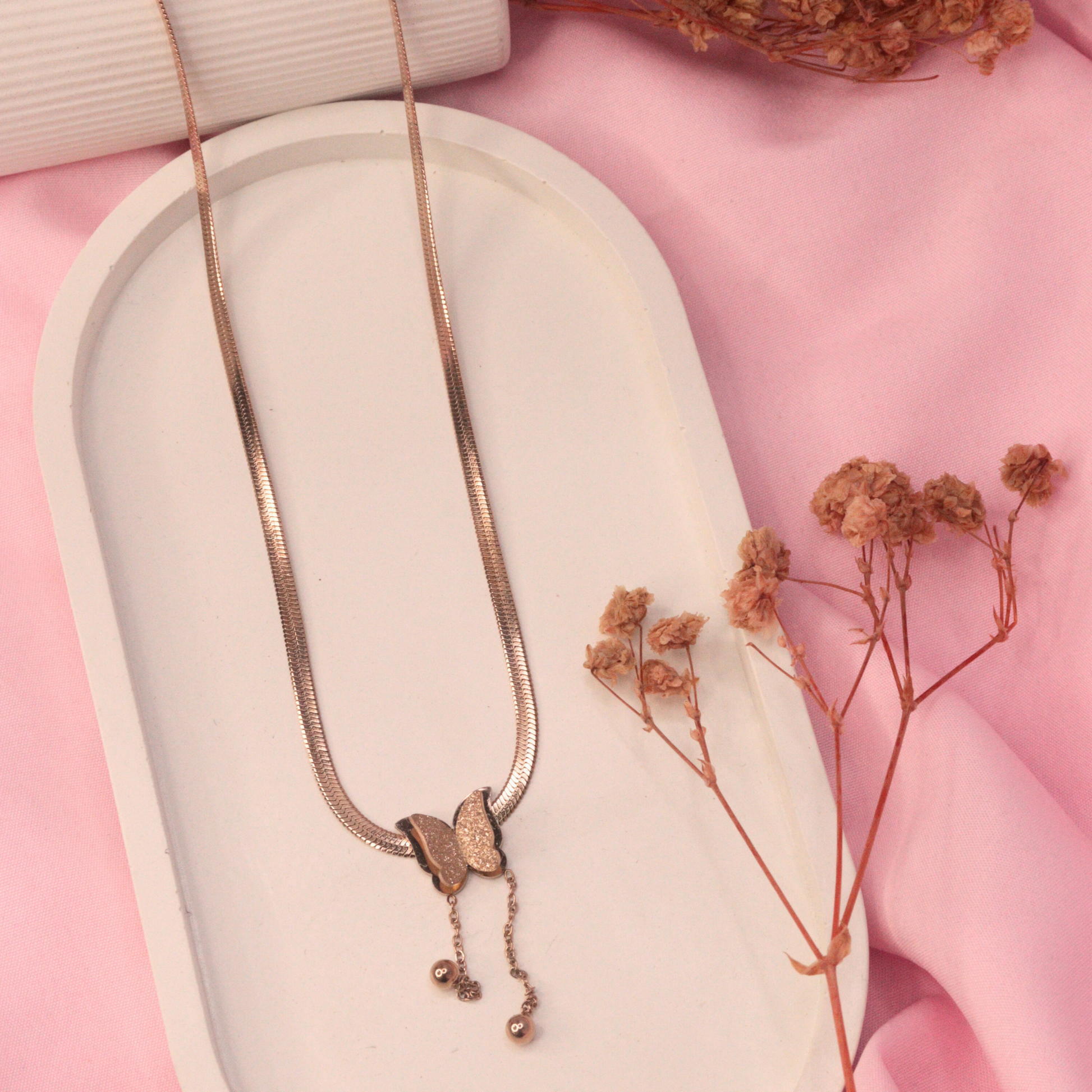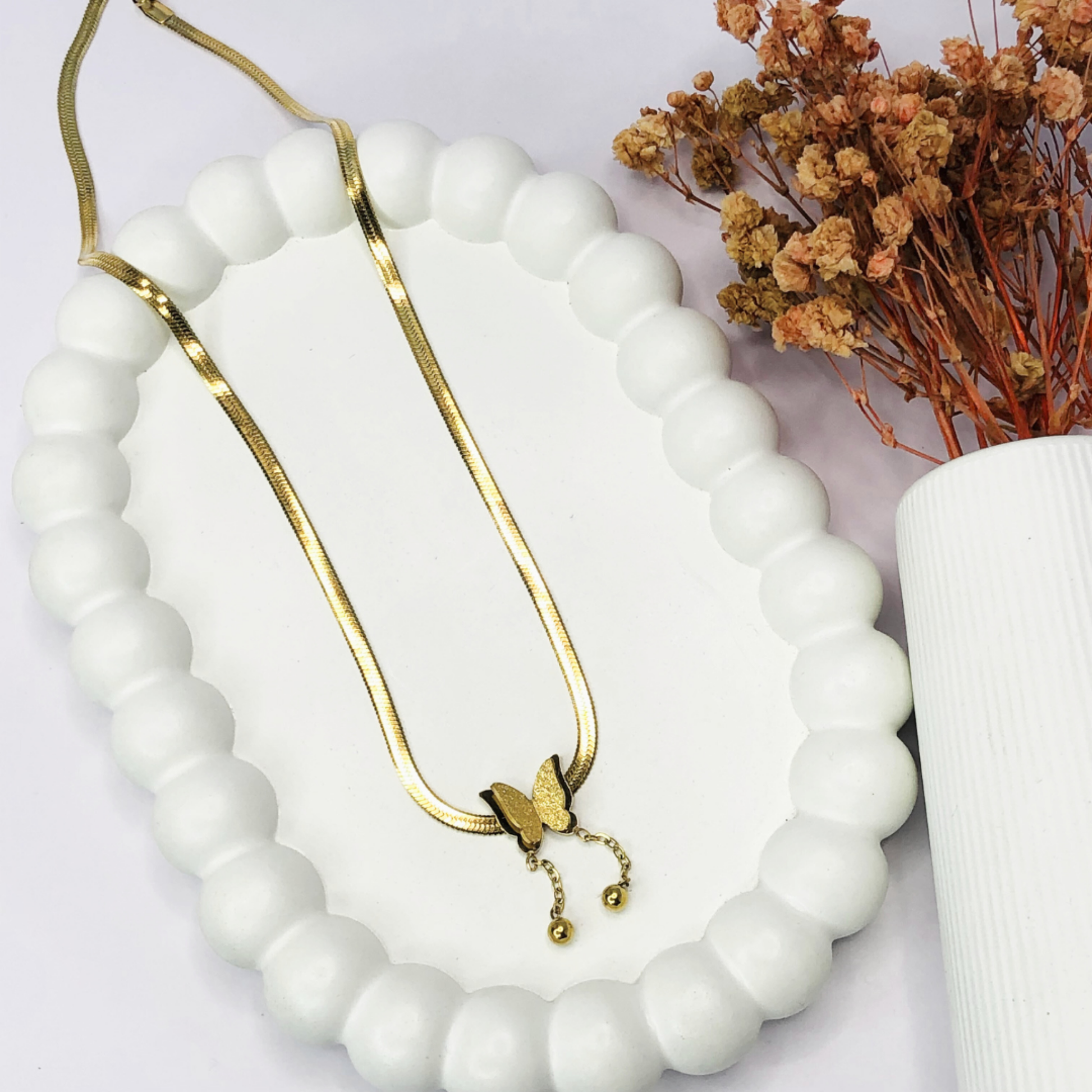 The Butterfly Snake Chain Necklace brings together two powerful symbols — the butterfly, representing transformation and freedom, and the snake chain, known for its modern, fluid design.