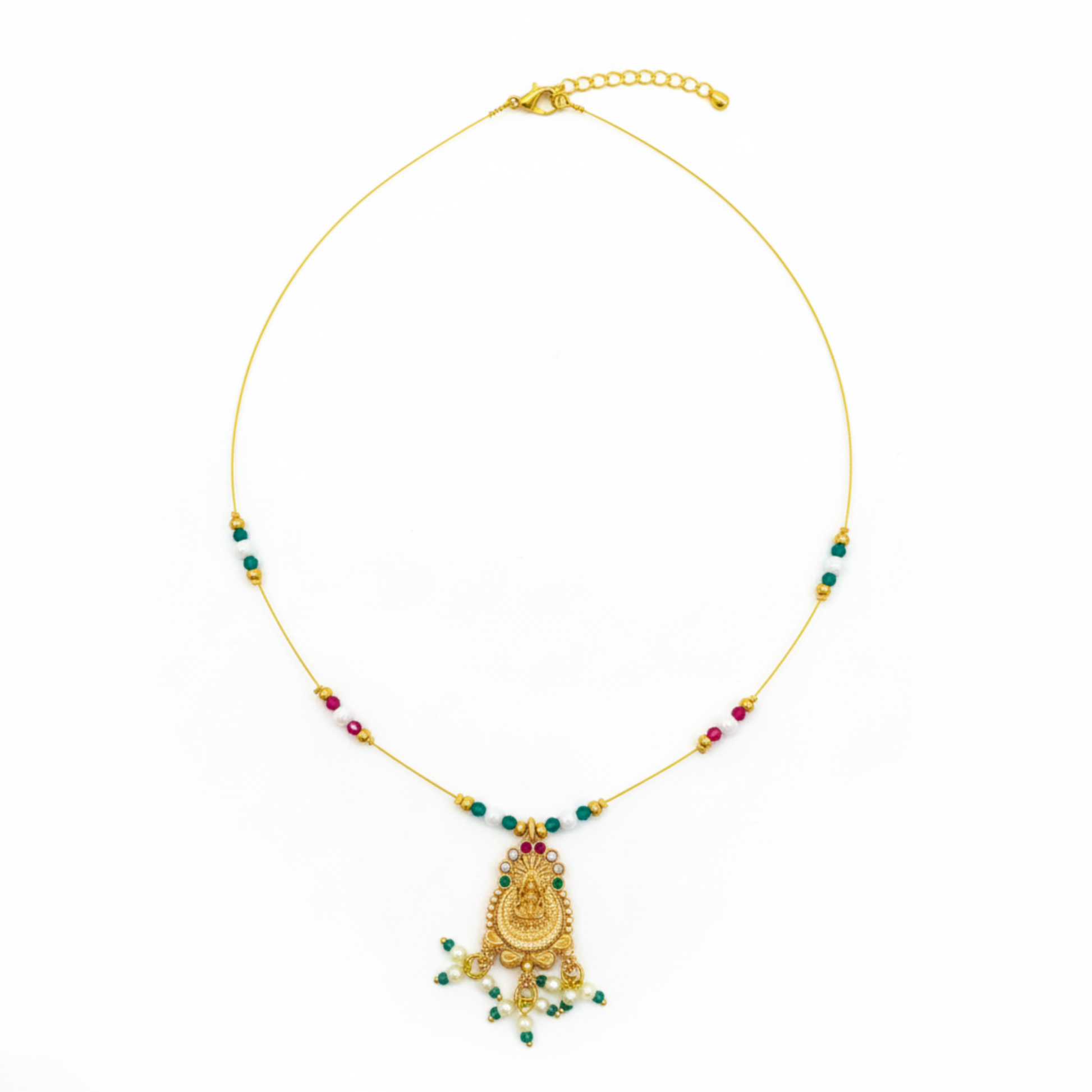 Pair the Camille Necklace with a pastel saree, elegant dress, or casual chic attire — it adds subtle sparkle and refined elegance to every look.