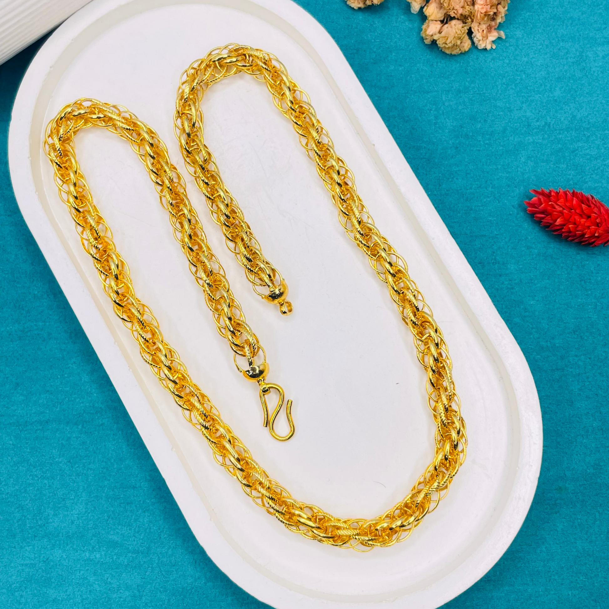 Pair this chain with a linen shirt or light-colored kurta to highlight its warm golden hue.