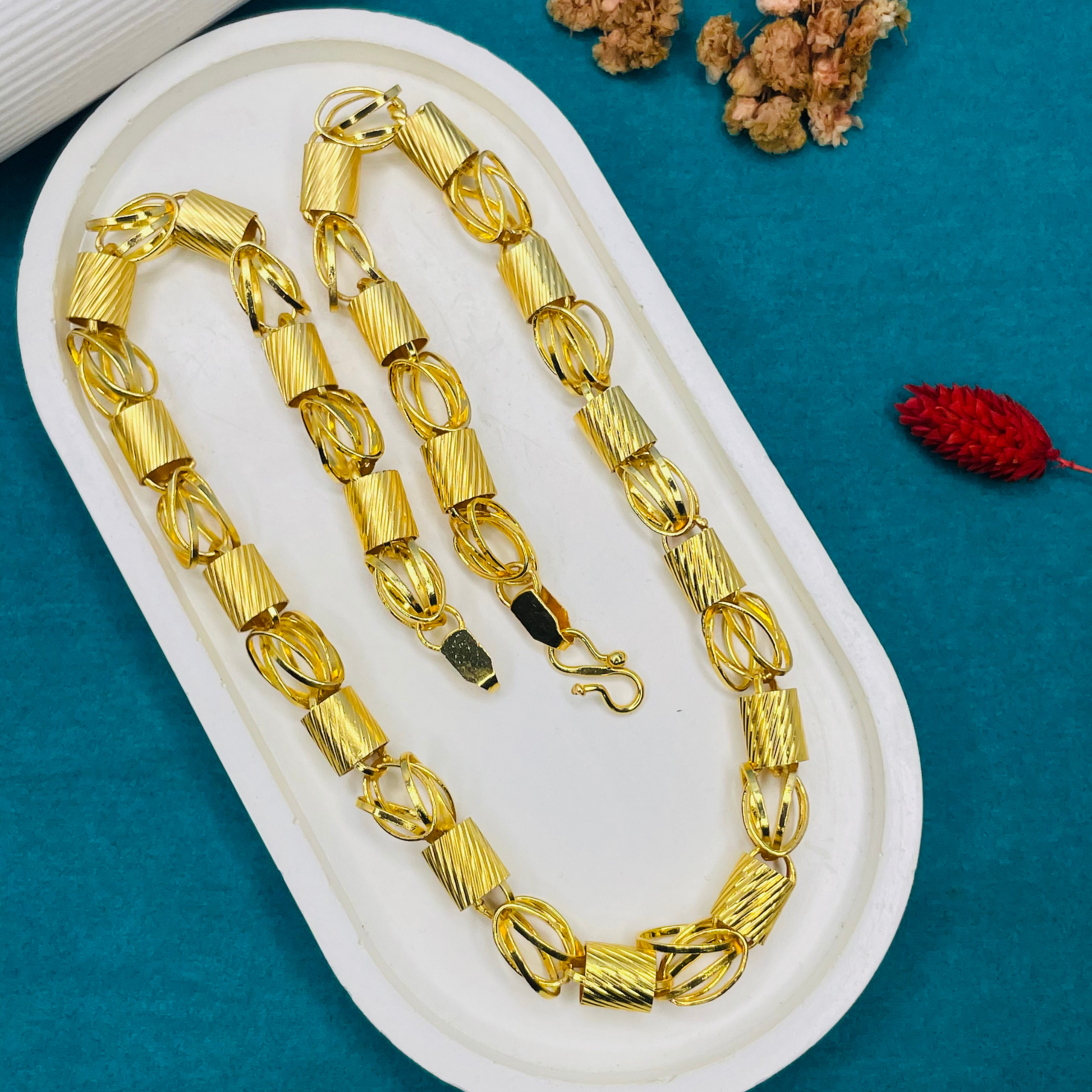 The Intricate Gold Chain is inspired by the idea that true strength lies in the details. Every link is a reminder that refinement and character go hand in hand.