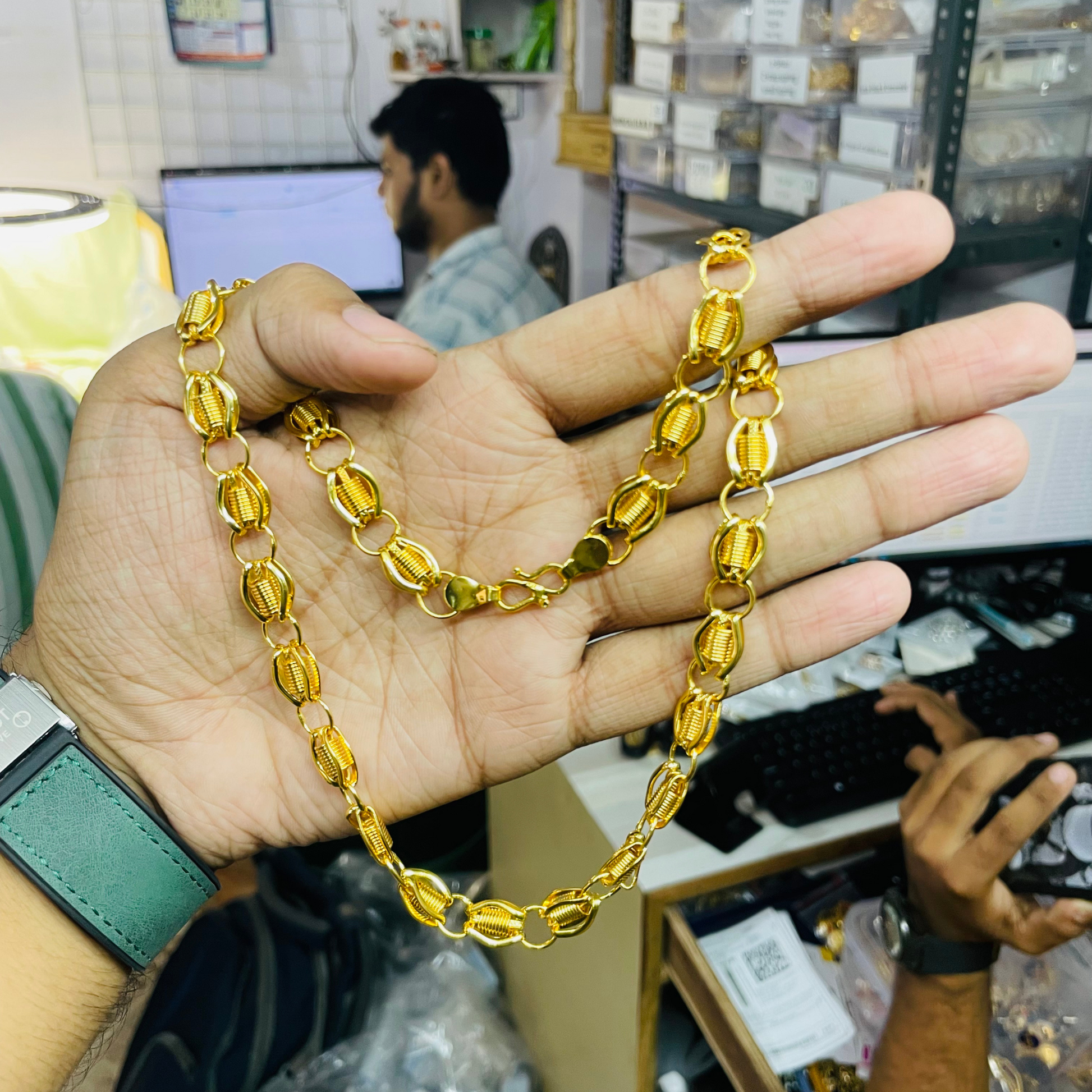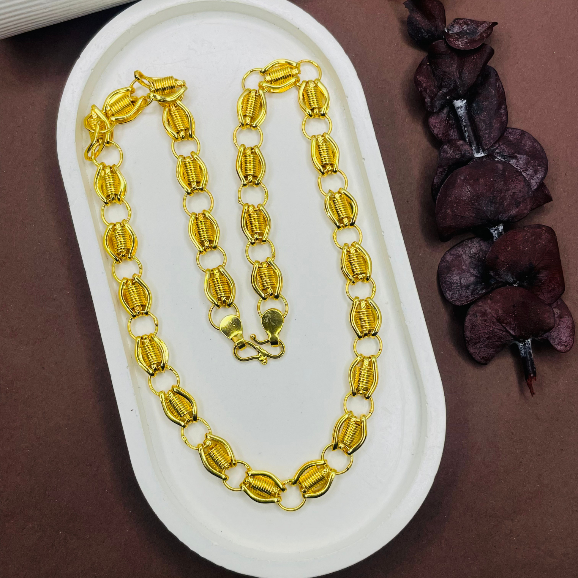 Featuring a deep-toned gold finish with a refined link structure, this chain offers a luxurious, almost shadow-like gleam. Crafted in high-quality Brass with micro gold plating in a rich antique tone, it’s sleek, edgy, and undeniably premium.