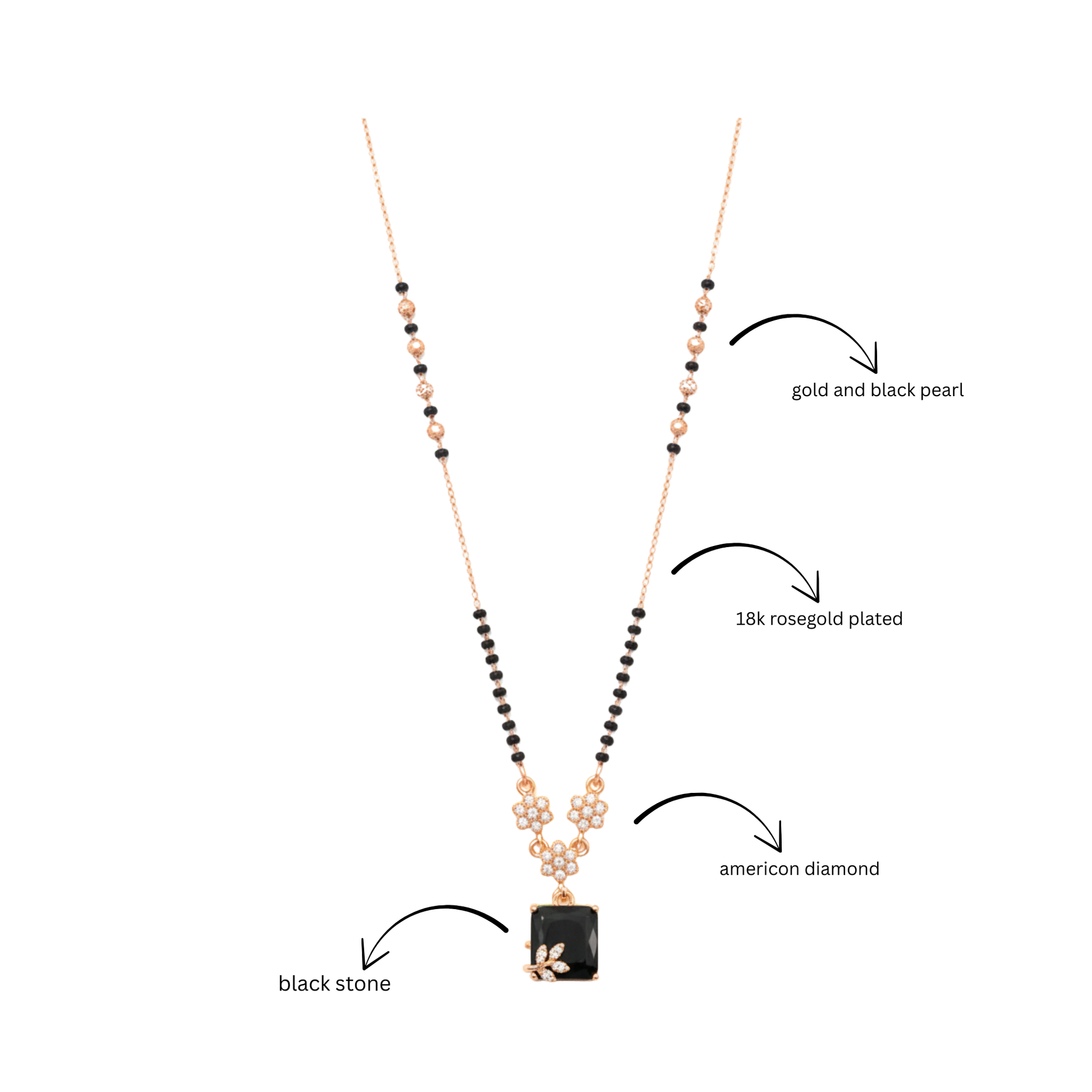 Made in 925 sterling silver with a radiant rose gold finish, the Mitali Mangalsutra features a sleek yet graceful pendant strung on the traditional black beaded chain.