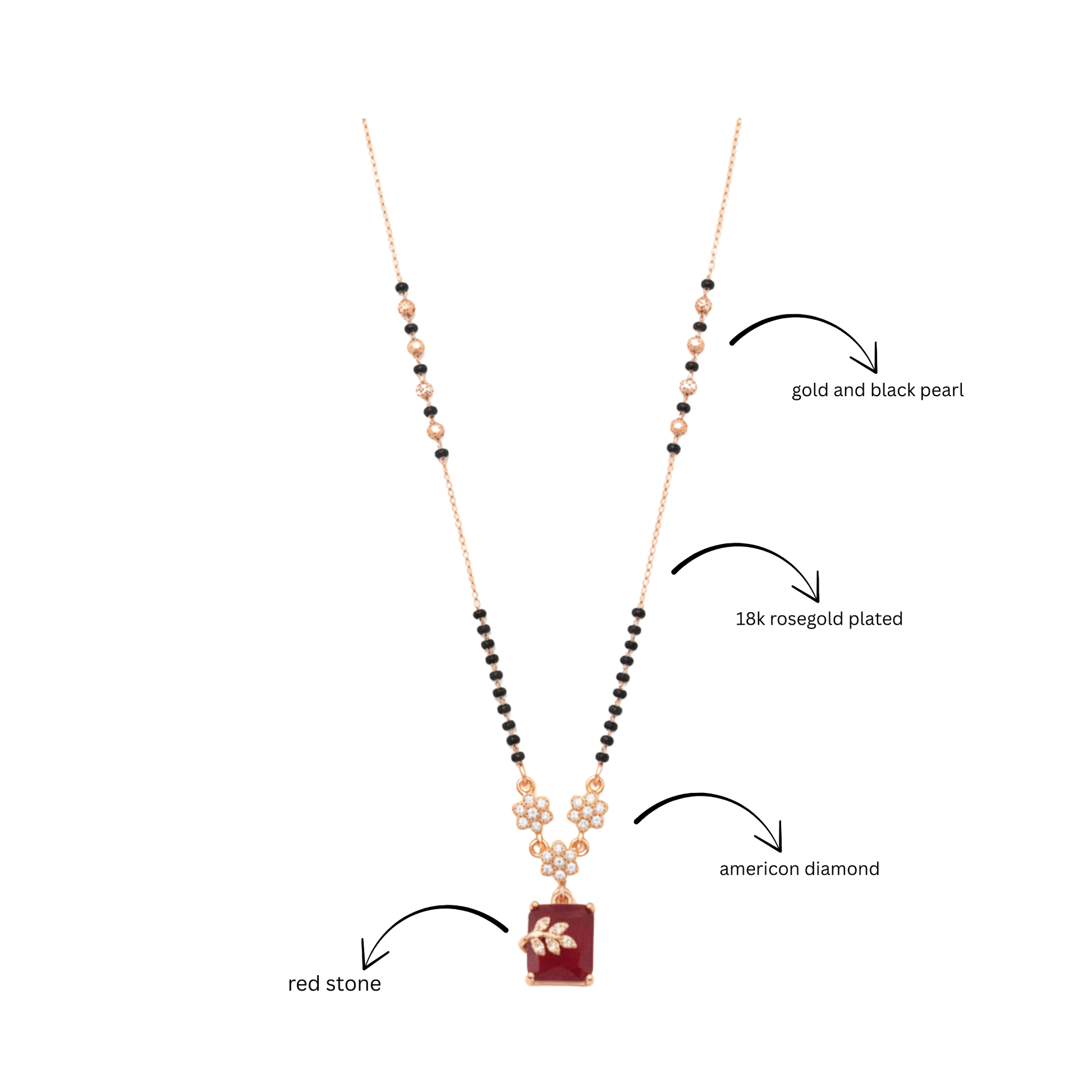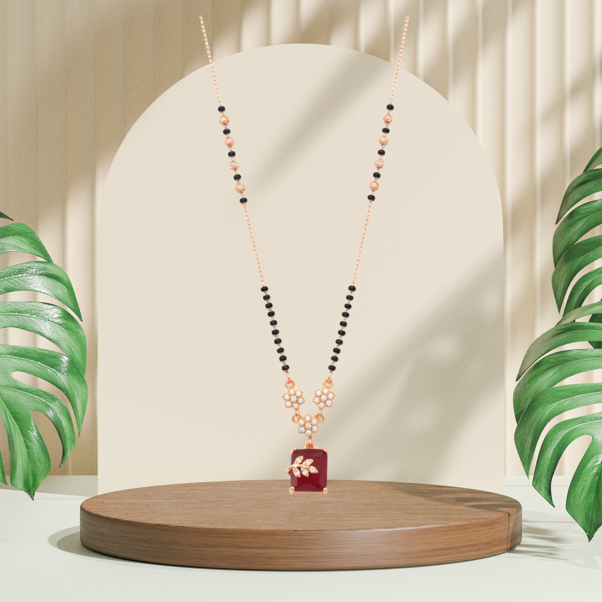 Crafted in 925 sterling silver with a luxurious rose gold finish, the Mohini Mangalsutra features a refined and graceful pendant set on the classic black beaded chain.