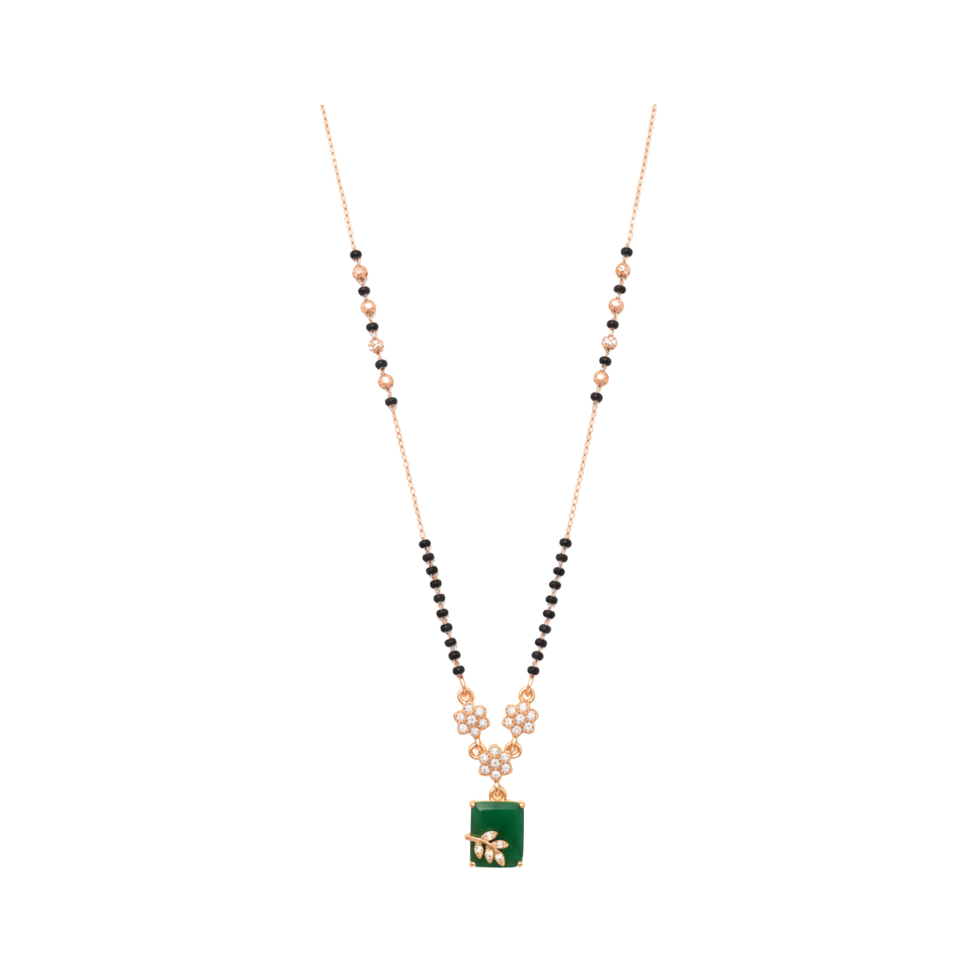 Made in 925 sterling silver with a radiant rose gold finish, the Nandini Mangalsutra features a beautifully designed pendant adorned on the traditional black beaded chain.