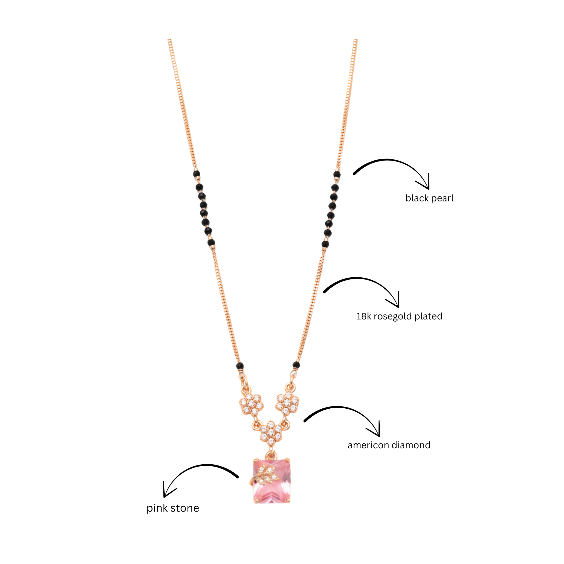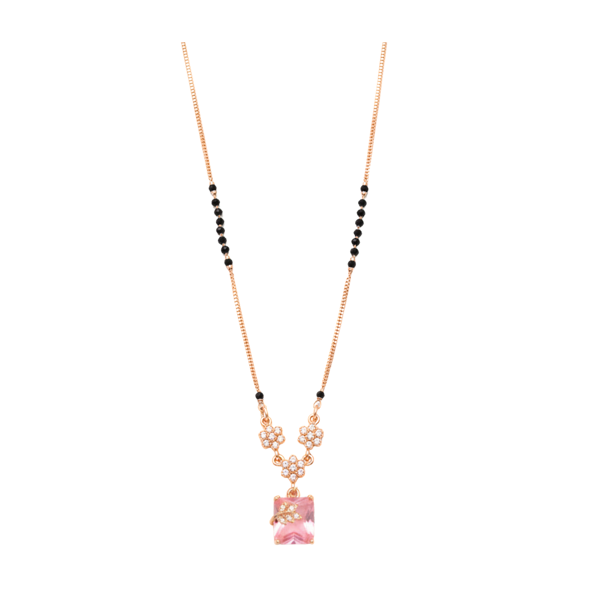 Crafted in 925 sterling silver with a glowing rose gold finish, the Priya Mangalsutra highlights a refined pendant beautifully placed on the traditional black beaded chain.