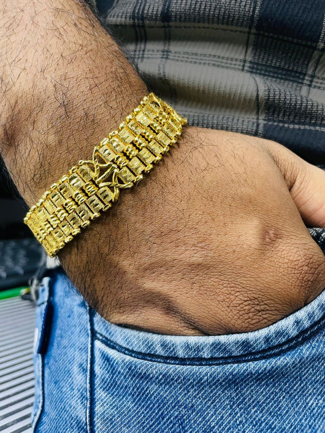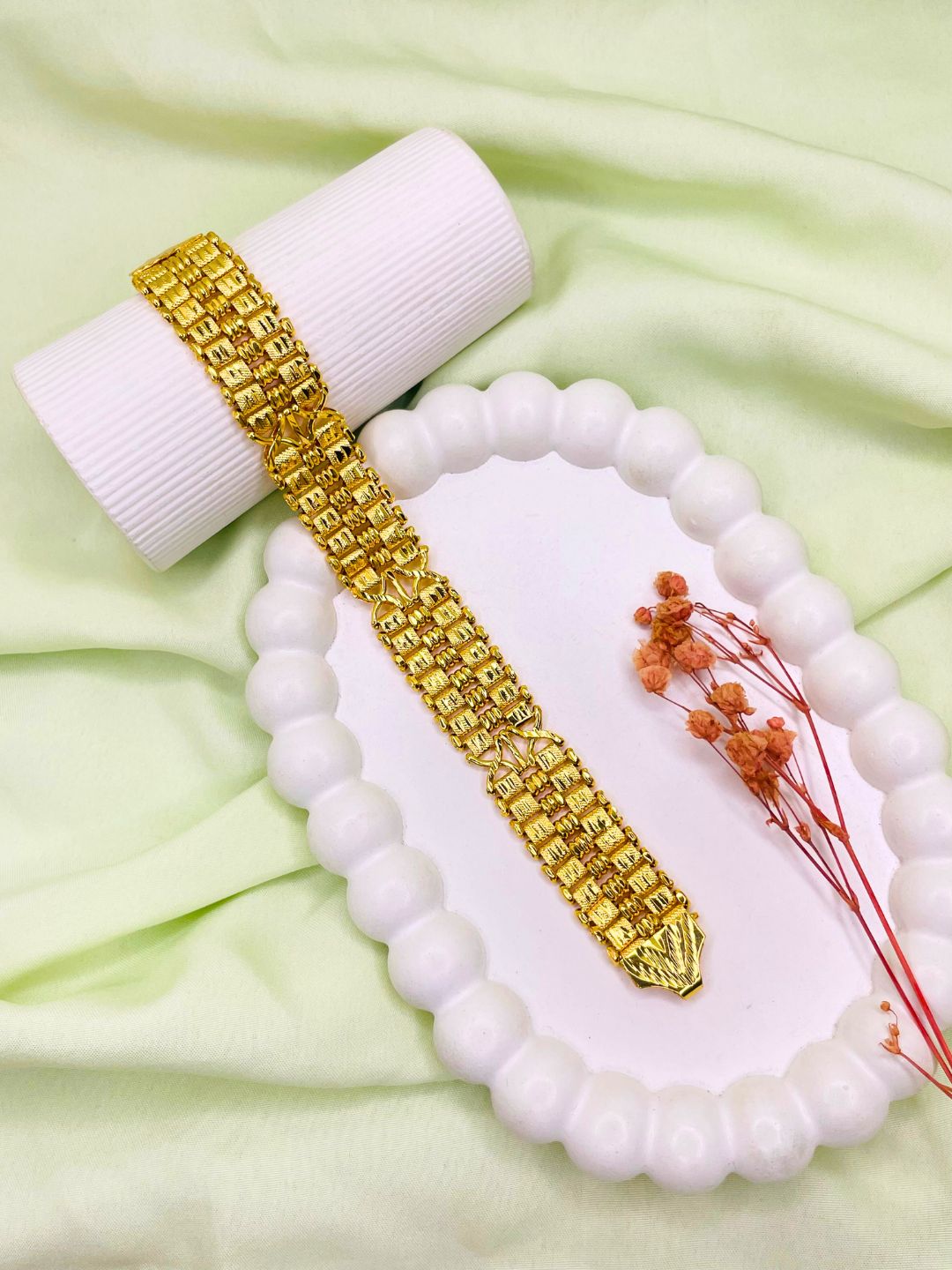 This micro gold plated bracelet features a sleek curb chain design — strong, polished, and masculine. It brings together the clean lines of urban design with a regal gold finish, perfect for elevating everyday looks or adding flair to festive fits.